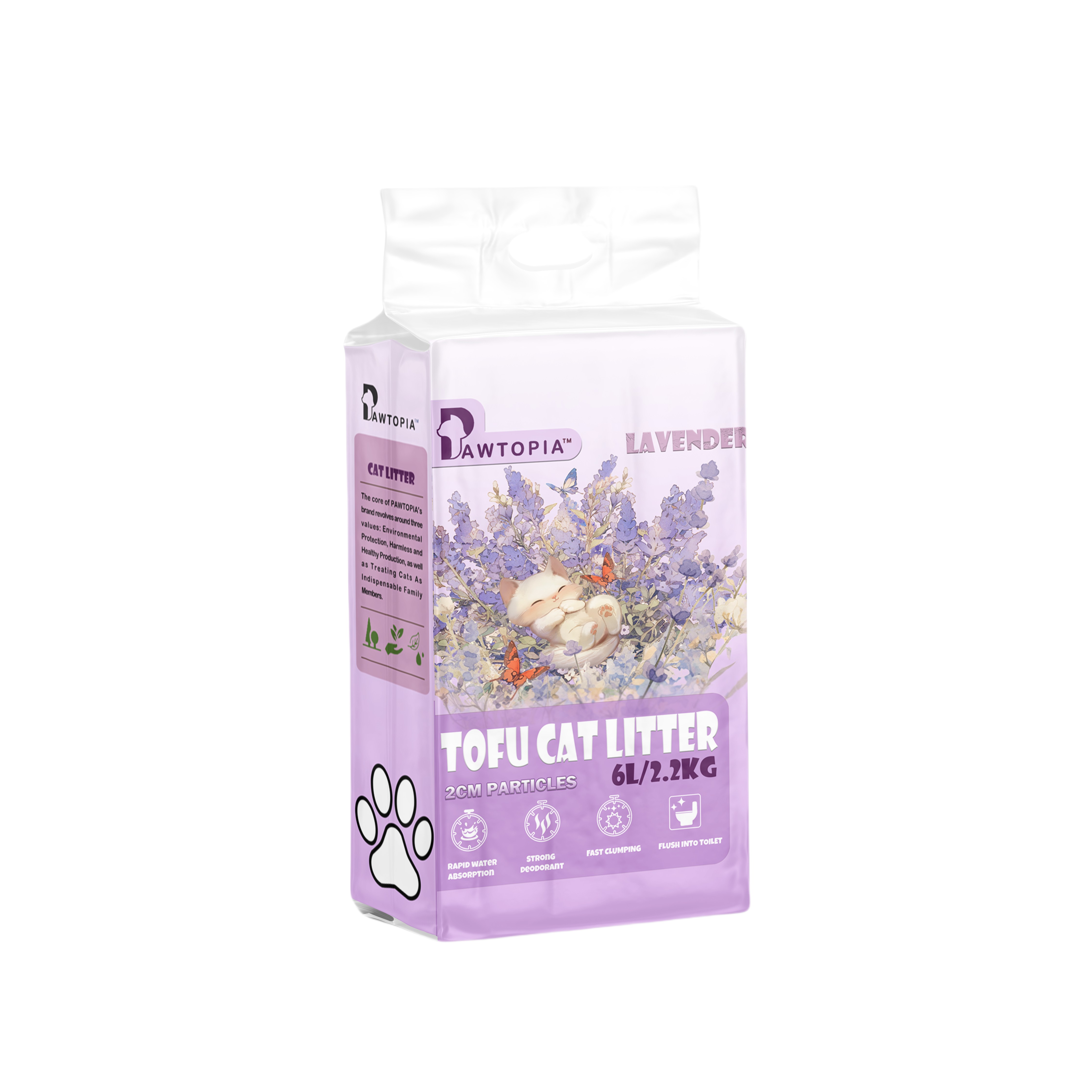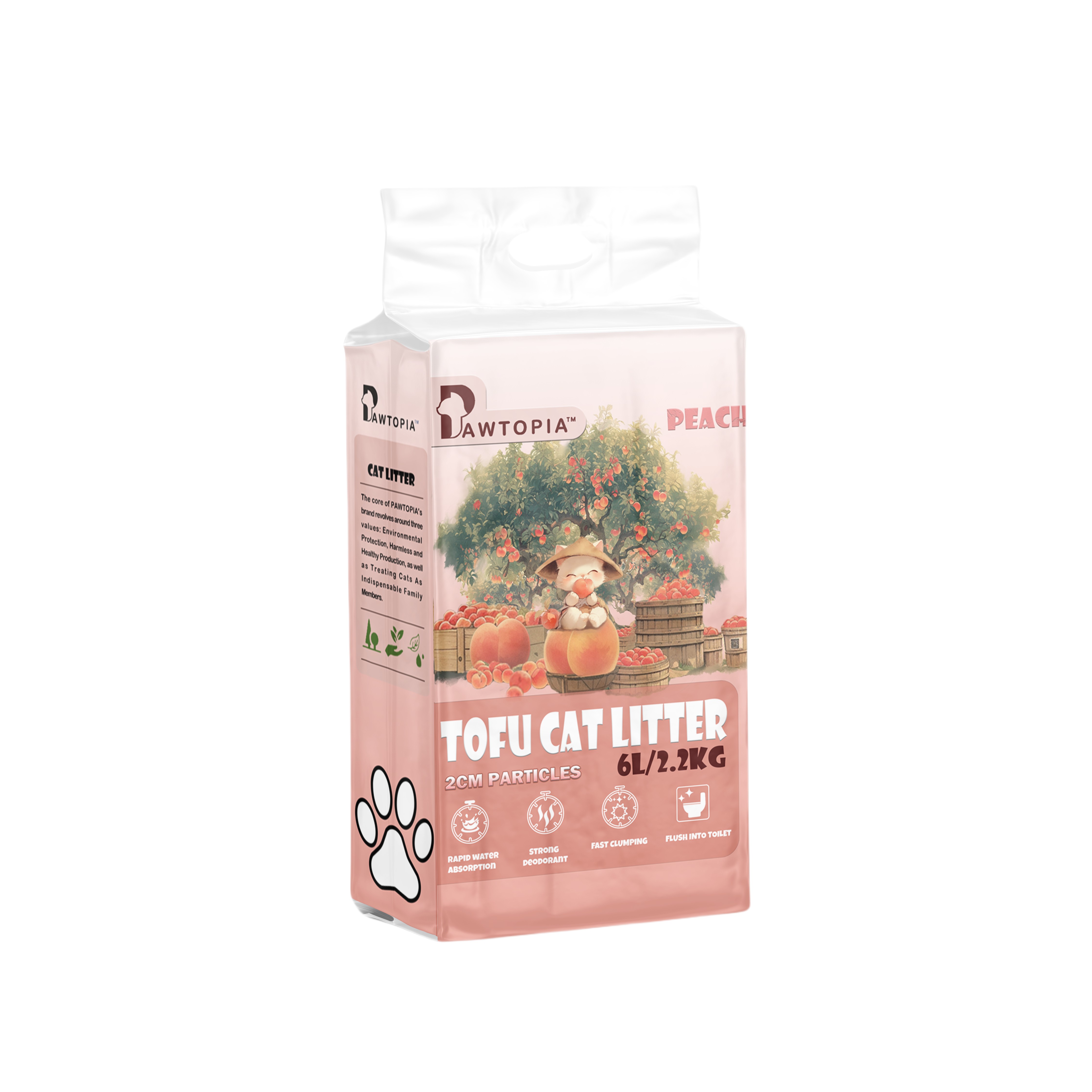 PAWTOPIA豆腐貓砂由食品級原材料通過先進技術制成。主要成分是植物纖維、淀粉和可食用瓜爾膠,即使被寵物意外吞食也無害。PAWTOPIA豆腐貓砂具有很好的吸收性、氣味控制,且無塵、可生物降解,易于鏟起并快速沖入廁所。它絕對是一種無毒且環保的貓砂。PAWTOPIA品牌的核心圍繞三個價值觀:環境保護、無害和健康生產,以及將貓視為不可或缺的家庭成員。